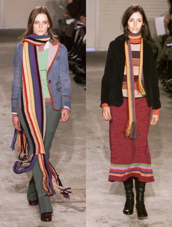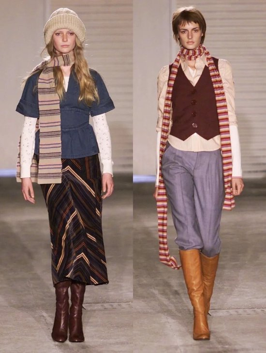 在 2024—25 秋冬秀场上,我们看到 Hermès 用围巾重构法式冷感,看到Acne Studios将超长围巾当作“移动建筑”,也看到Burberry将经典的格纹变成缤纷的色彩在围巾上玩出新花样。围巾不再只是“搭配”,而是一个关于比例、尺度、色彩和态度的造型核心——它决定了一个人走进冬天的方式。