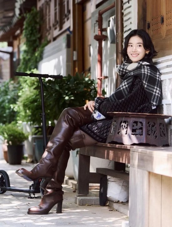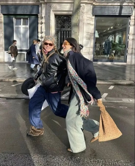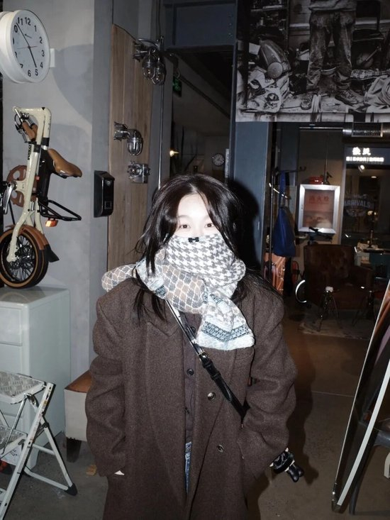 • 宽大围巾能让上半身体积感增强,形成“头肩比”的时髦力量;