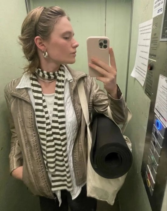 • 纤细围巾能让造型更法式、更轻盈,带有一种不费力的浪漫感。