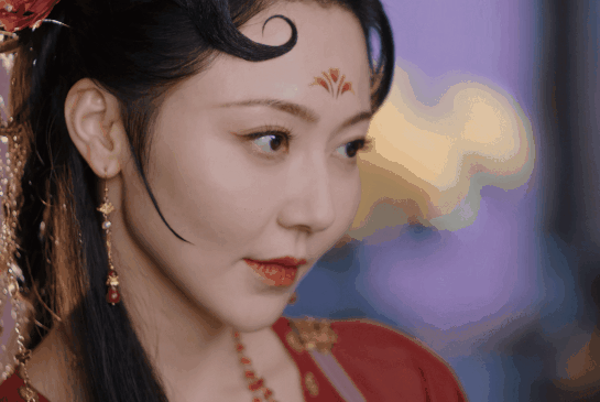 头上的花钿和上挑的眼线都将演员的美貌优势凸显出来。