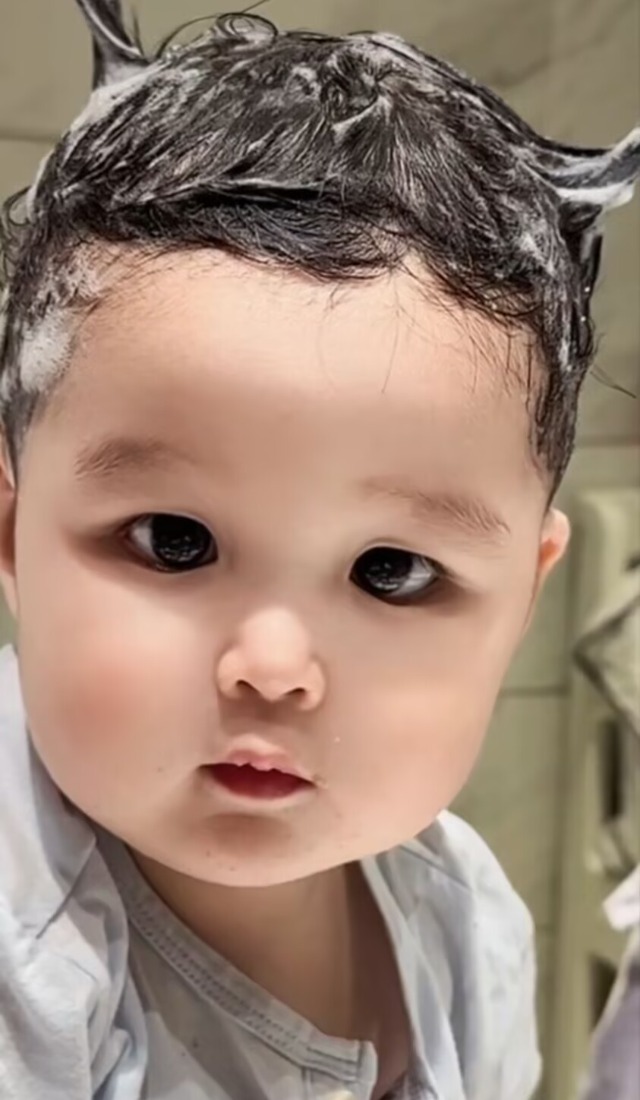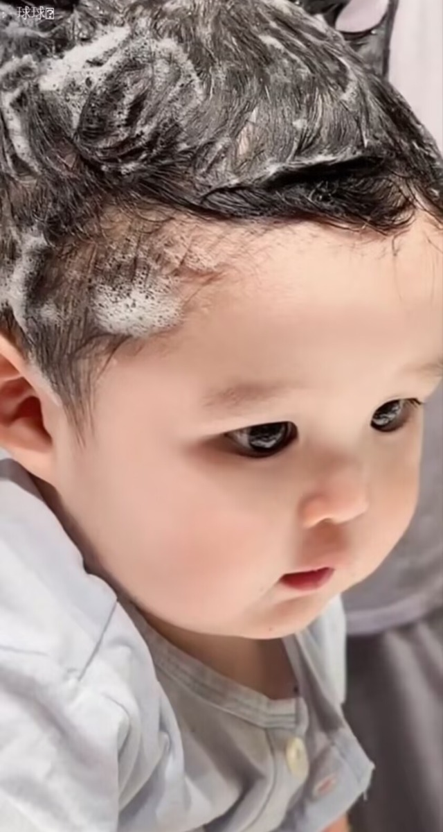 曝光近照中,只见身穿浅色居家服的小皮儿,由姥姥马丽娟抱着在淋浴间洗头发,小家伙不哭不闹,而且还开心玩起头上的泡沫,神情憨态可掬,招人喜欢。