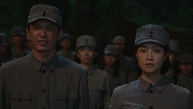 听领导讲话被鼓舞时,她的眼神从最初的迷茫逐渐亮起来,眼尾泛红却硬憋着不让眼泪掉下来,紧绷的下颌线和挺直的腰背,把革命女性被点燃斗志的模样刻画得入木三分。