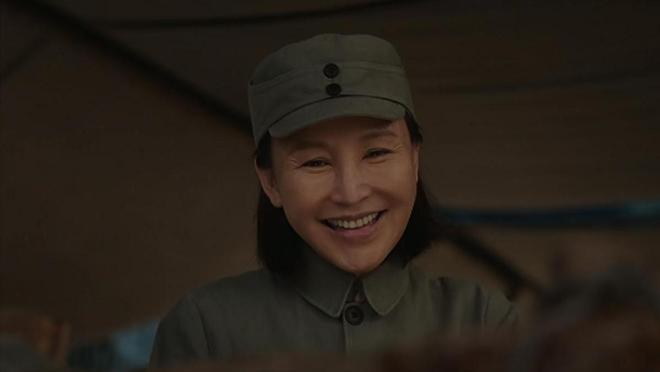 不管是跟孩子们互动,还是跟战友们商议转移事宜,她的表情始终没变过,全程都是同一种僵硬的状态,完全看不到角色的灵魂,让人觉得她不是在演康大姐,只是穿着军装的岳丽娜本人。