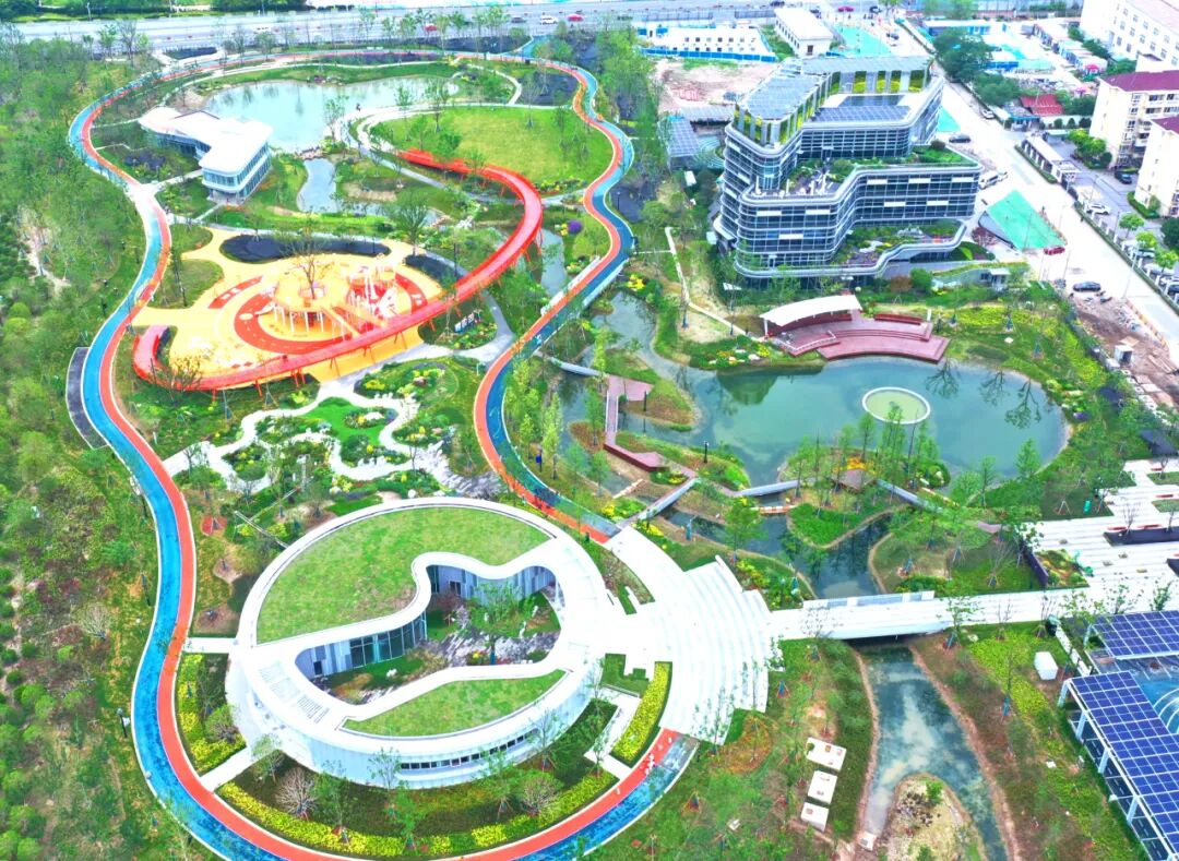 在桃浦,一幢幢产业楼宇拔地而起。旁边的李子园公园,通过生态景观道路和附属绿地串联成为连续完整的生态廊道,形成覆盖全域的碳汇空间网络,成为普陀区首个“近零碳公园”,并与长三角一体化绿色科技示范楼项目一同入选市级减污降碳优秀案例,为全市低碳发展提供了可复制的经验。